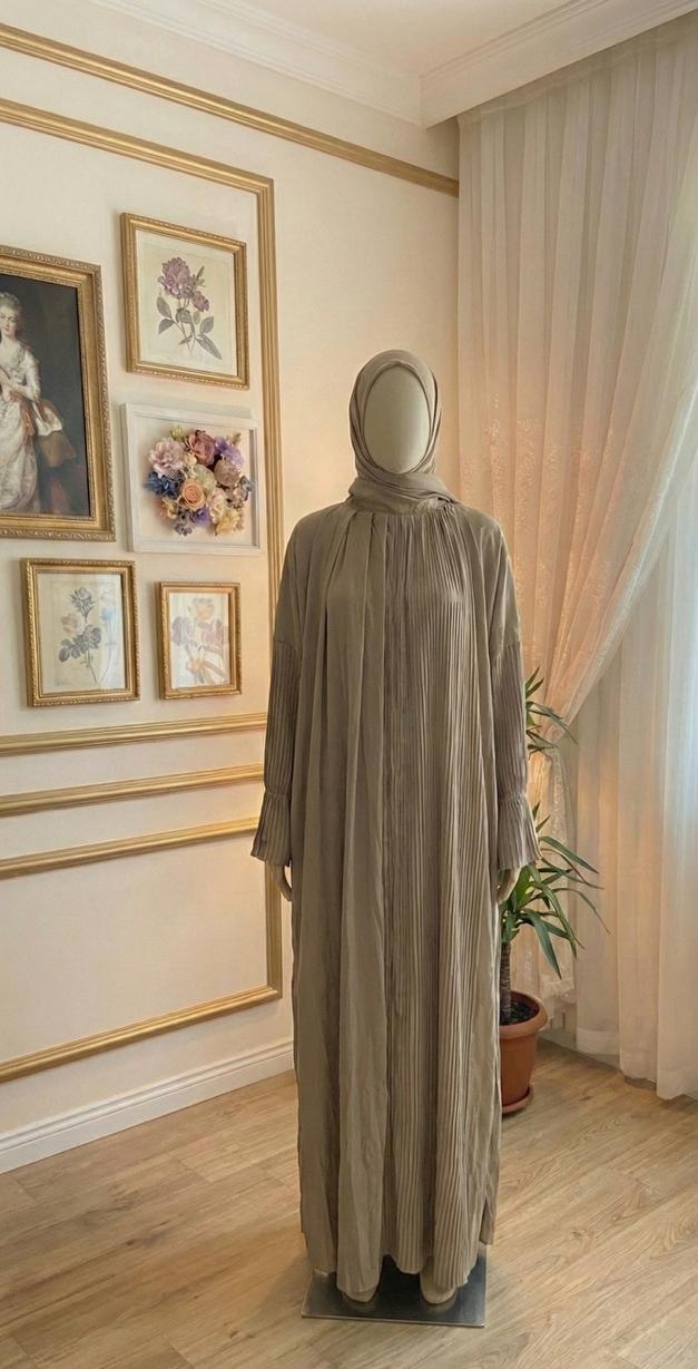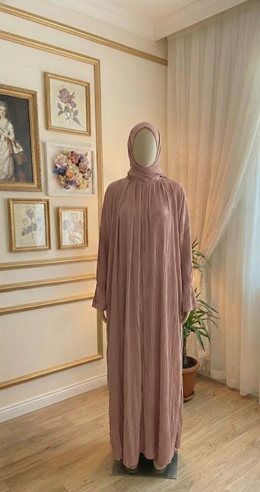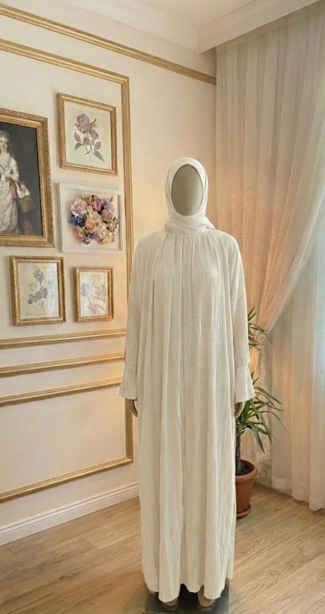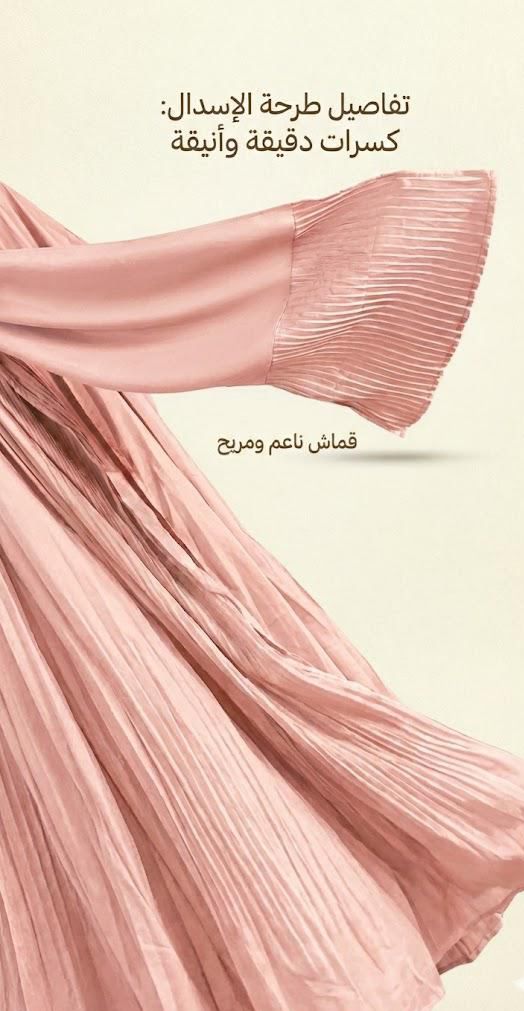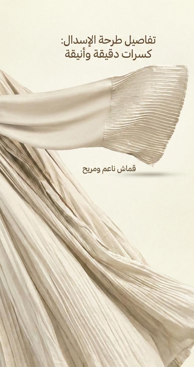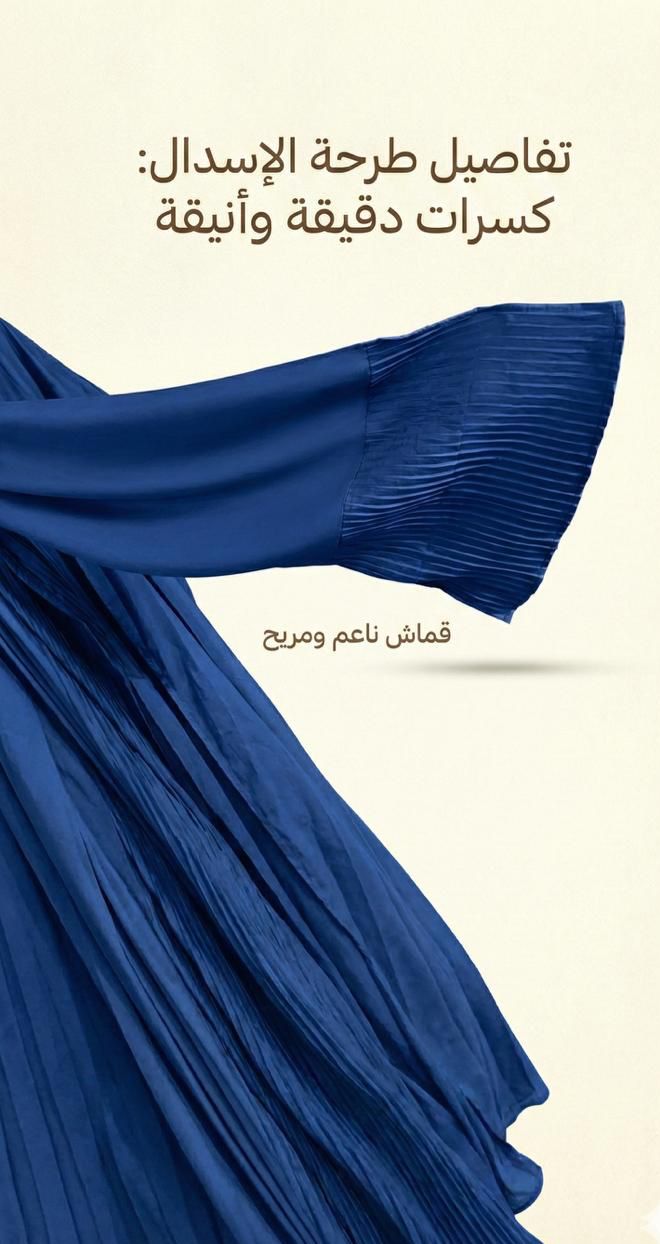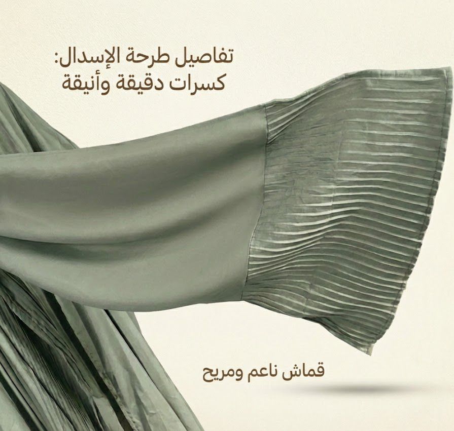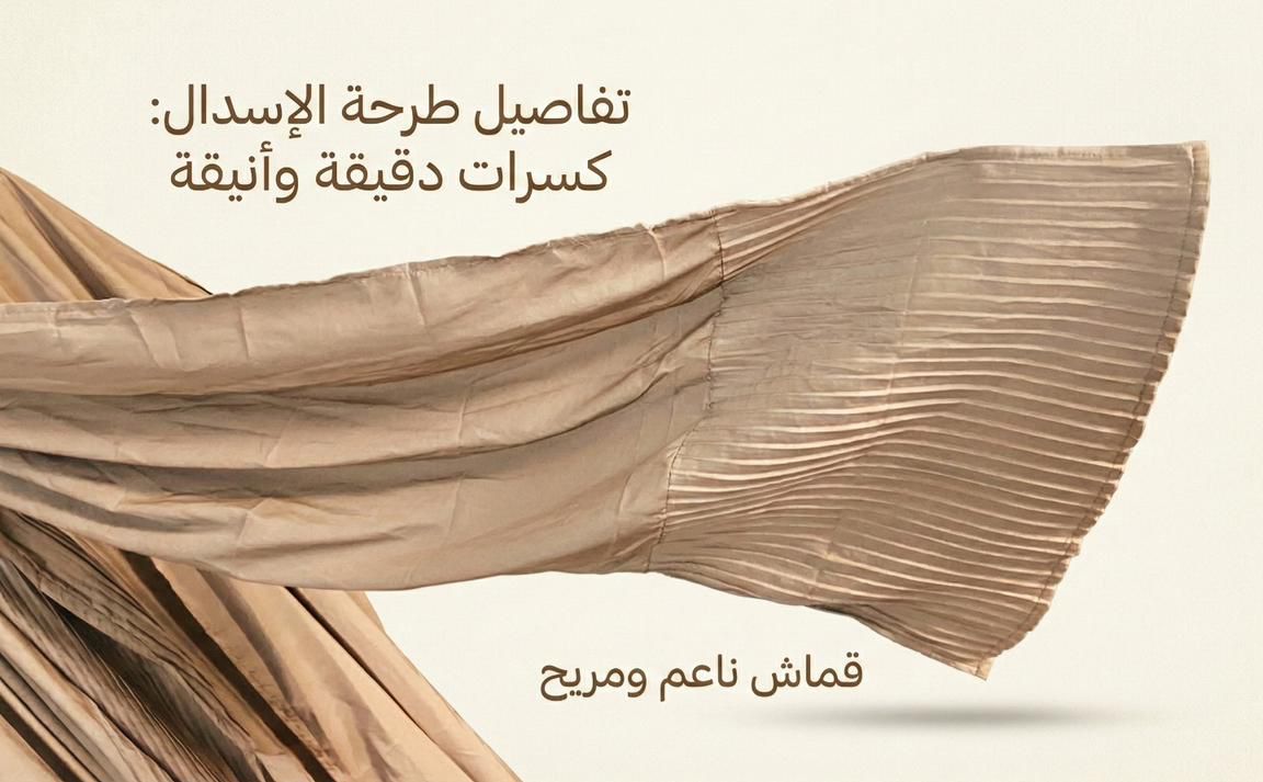 * تصميم بليسيه عصري: الكسرات الطولية تعطي مرونة كبيرة في المقاس (فري سايز) وتجعل شكل الإسدال مرتباً دائماً دون الحاجة للكي.