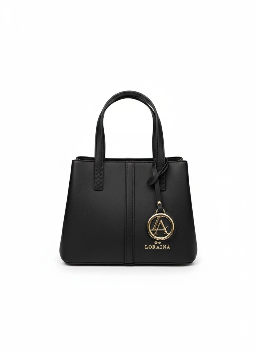 حقيبة يد نسائية فاخرة من لورينا (LORAINA) – أسود ملكي بتصميم كلاسيكي عصري.