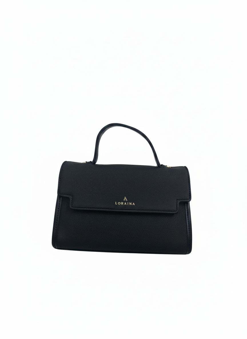 حقيبة يد نسائية فاخرة من لورينا (LORAINA) – أسود ملكي بتصميم كلاسيكي عصري.