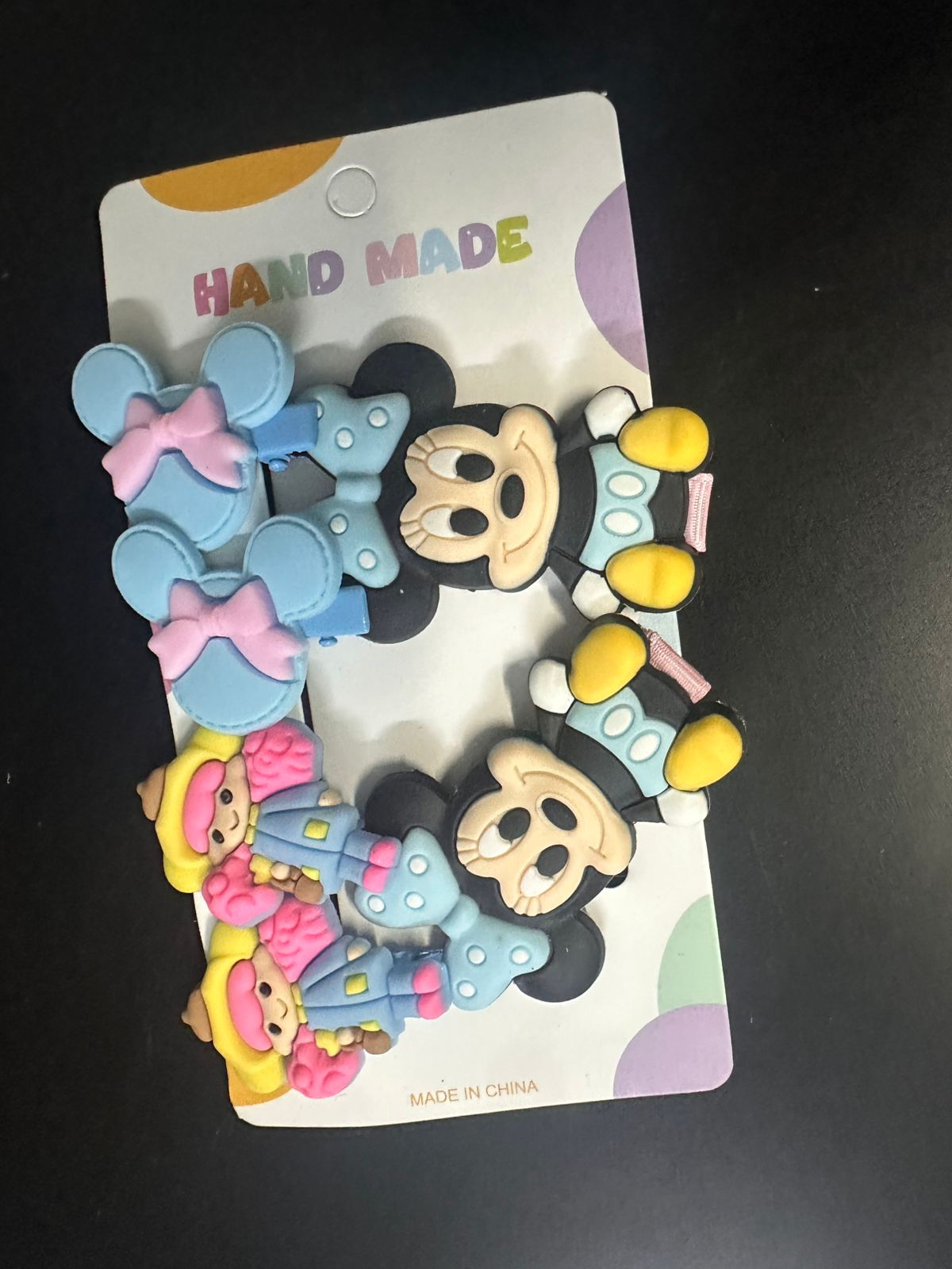 طقم مشابك شعر “ديزني فريندز” للأطفال – 6 قطع بتصاميم ميني ماوس وشخصيات كرتونية (Handmade)