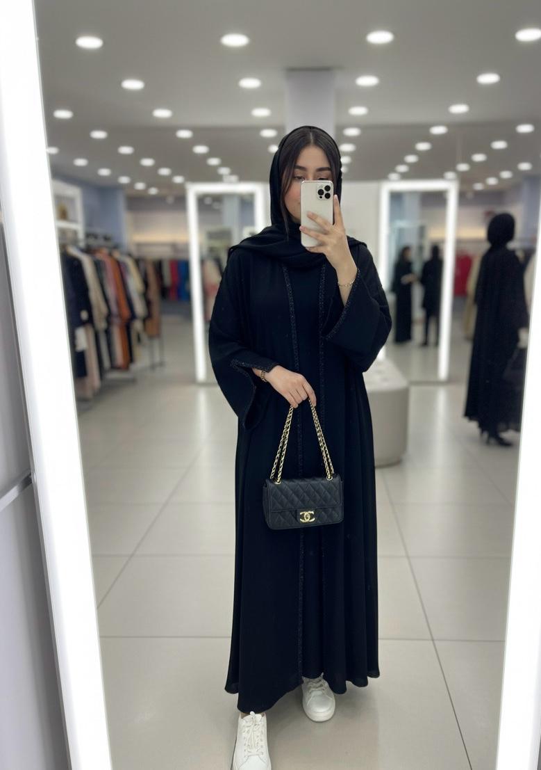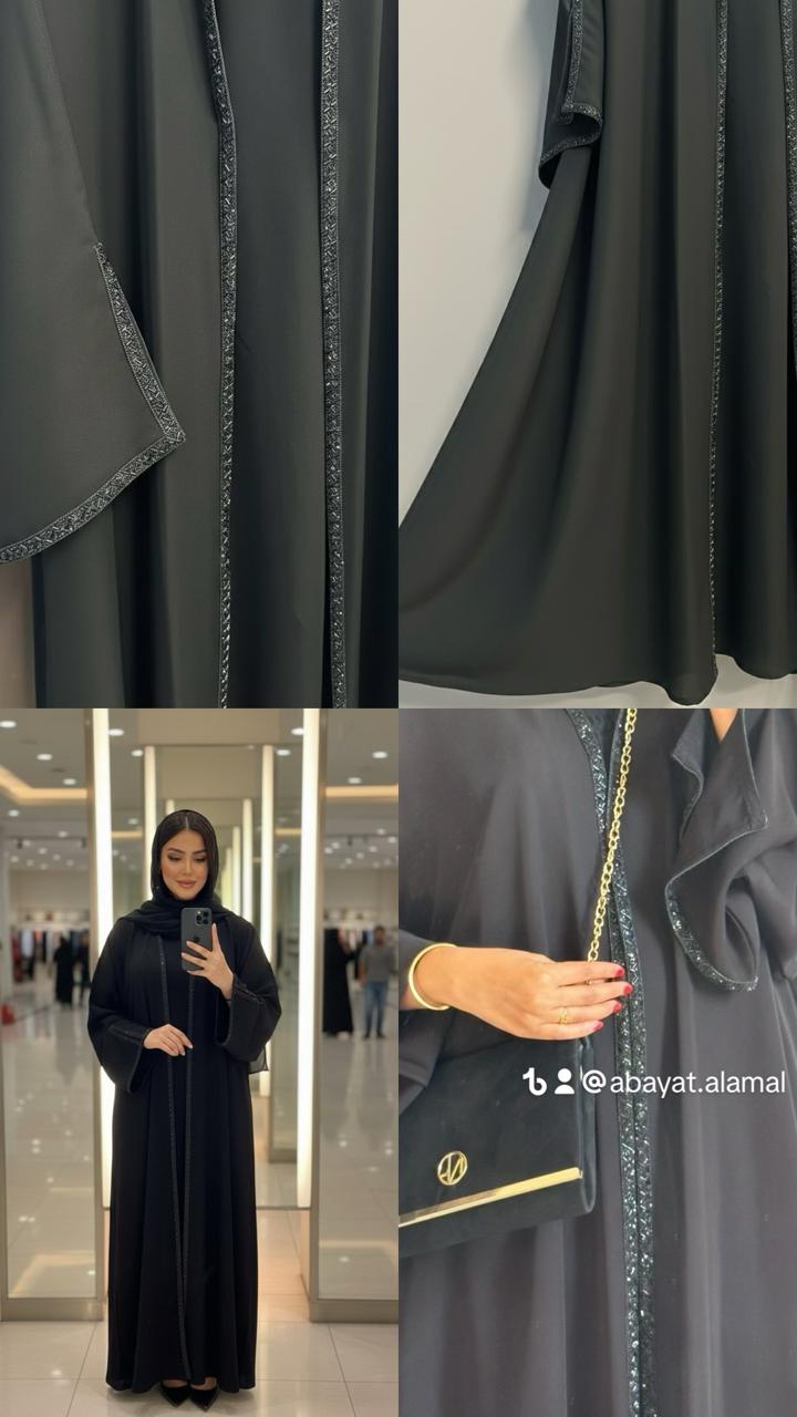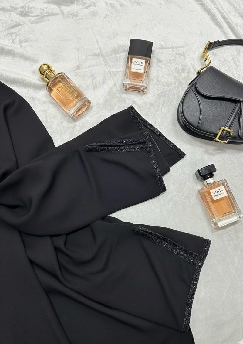 * التفاصيل: تطريز كريستالي دقيق (Jet Black) على الحواف يمنحكِ لمسة فنية فريدة.