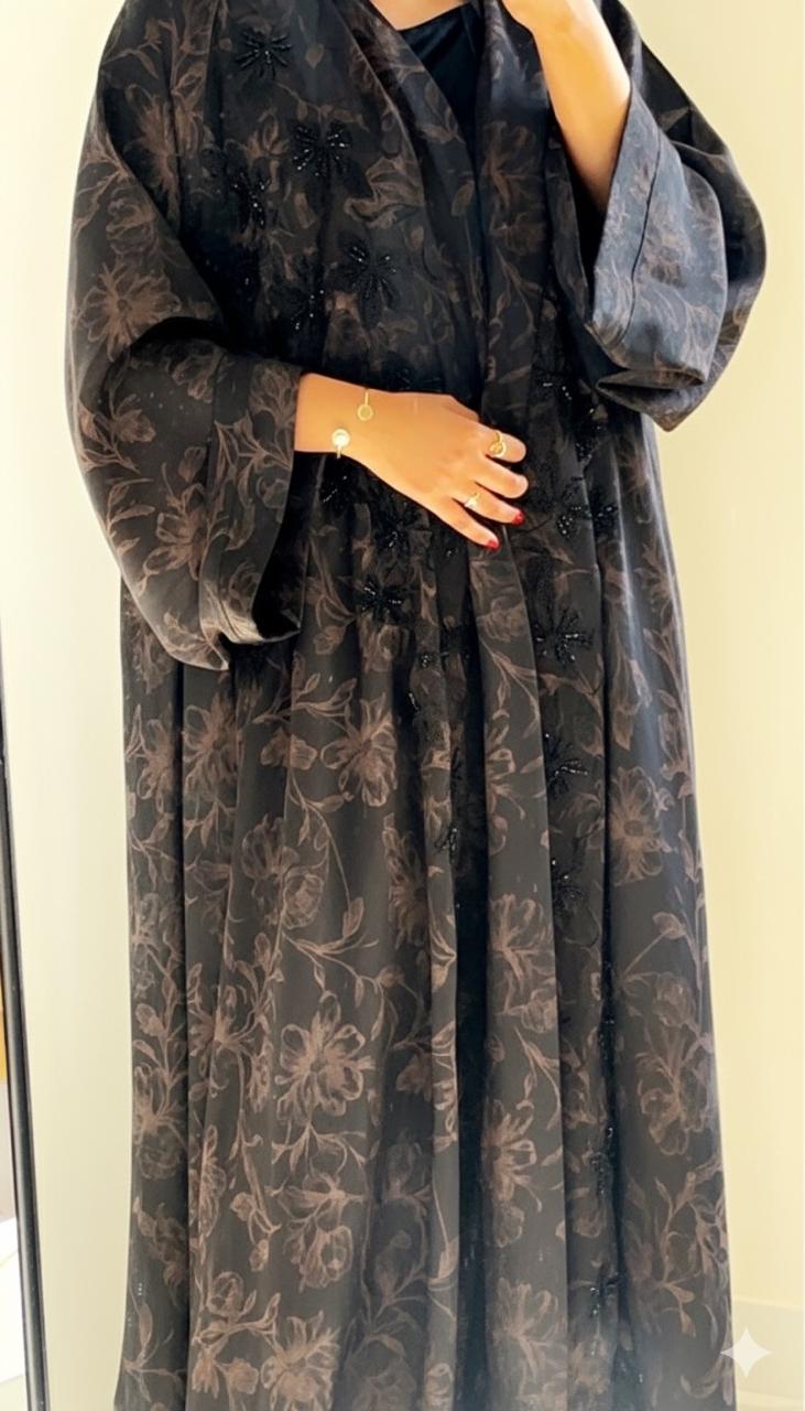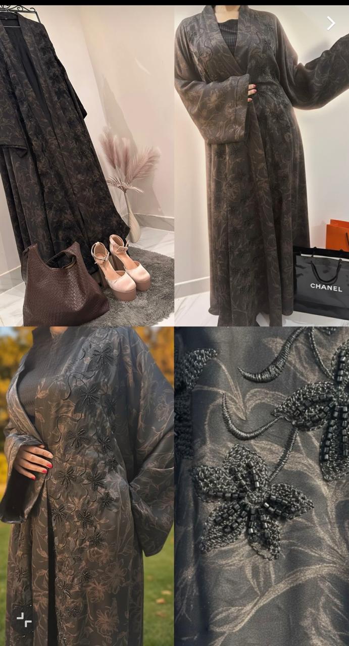 تألقي بإطلالة استثنائية مع عباية ستان بني شوكولاتة، القطعة التي تجمع بين الرقي العصري واللمسات الكلاسيكية الفاخرة. صُممت هذه العباية من أجود أنواع قماش الساتان الناعم الذي يتميز بلمعة حريرية انسيابية تخطف الأنظار، مع نقوش زهرية دقيقة مدمجة في نسيج القماش تضفي عمقاً وجمالاً هادئاً.