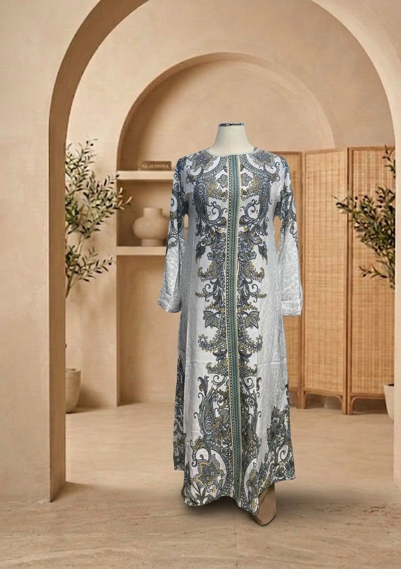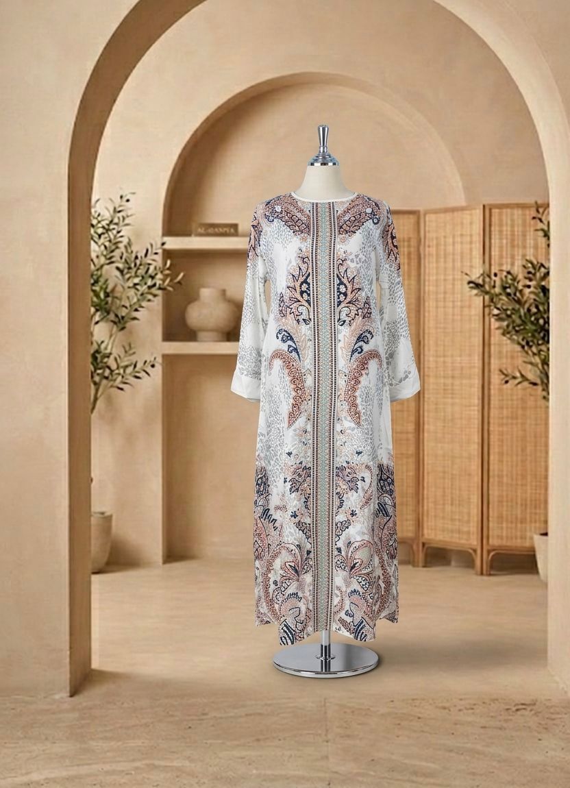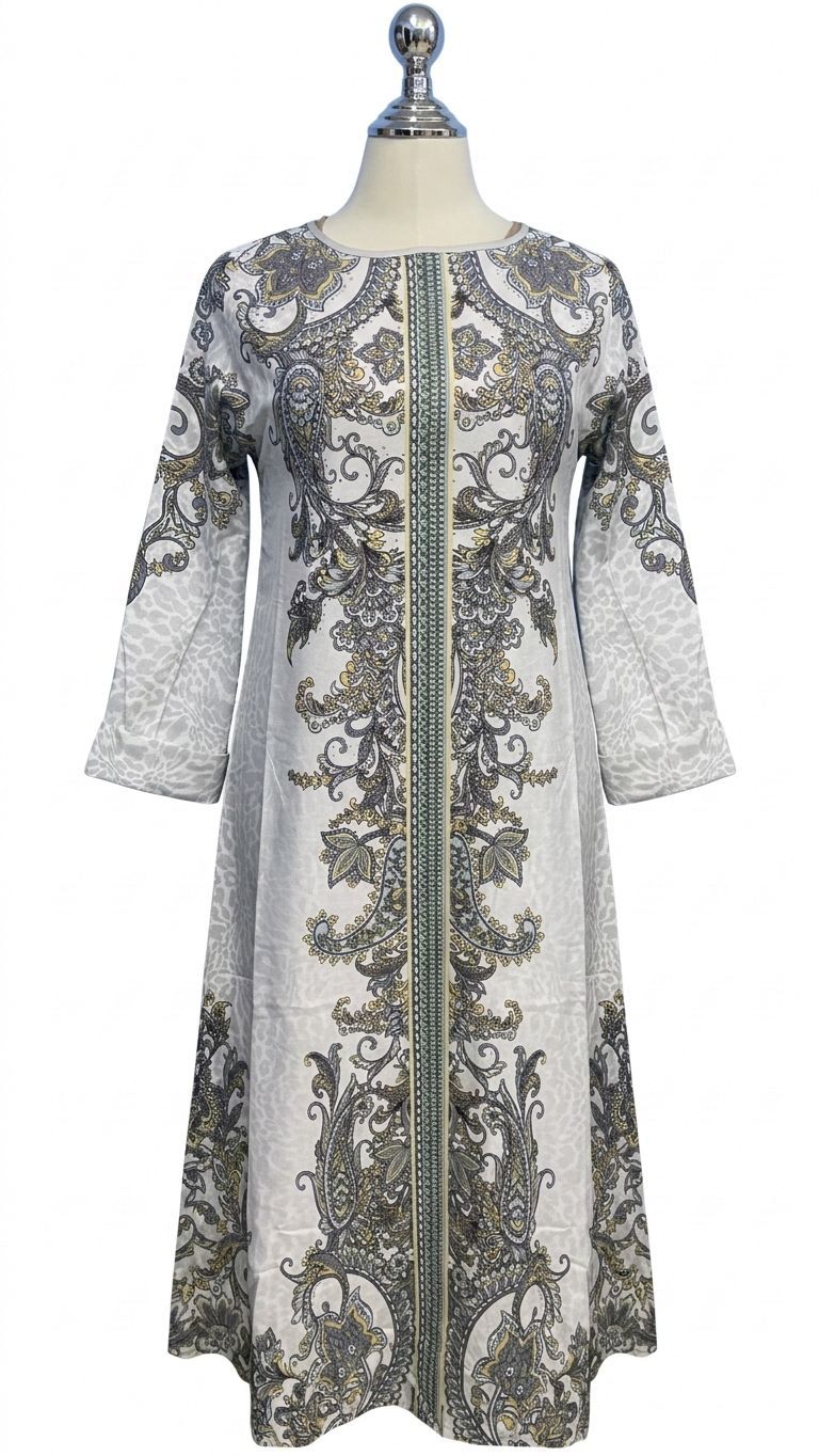 فستان نسائي طويل بنقشات بوهيمية راقية – قفطان عصري بتصميم شرقي فاخر